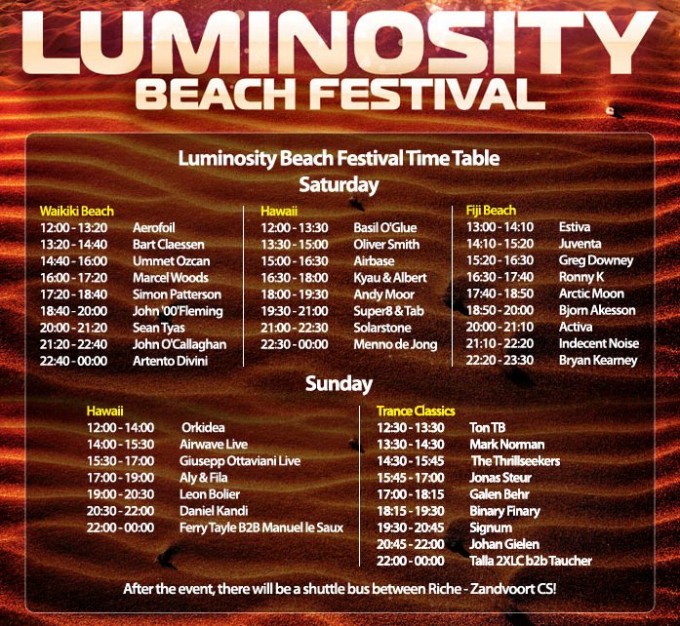News: Timetable Luminosity Beach Festival 2012 Lämna ett svar The Timetable for the epic festival by the beach is released: Looks like this is going to be two very hectic days!